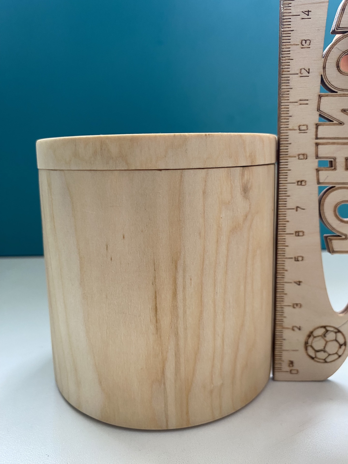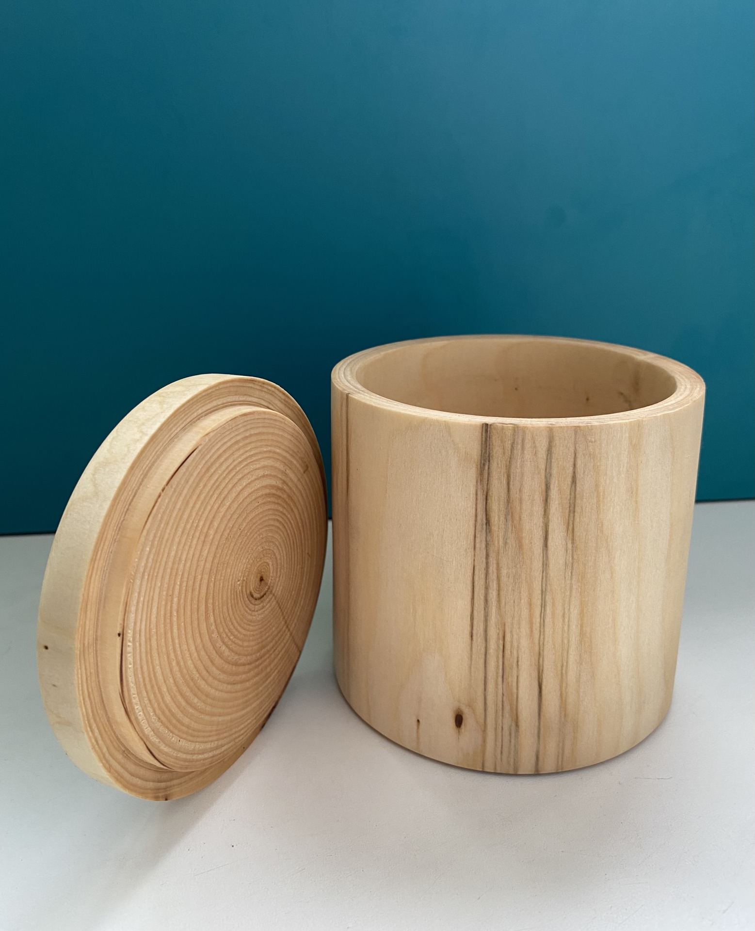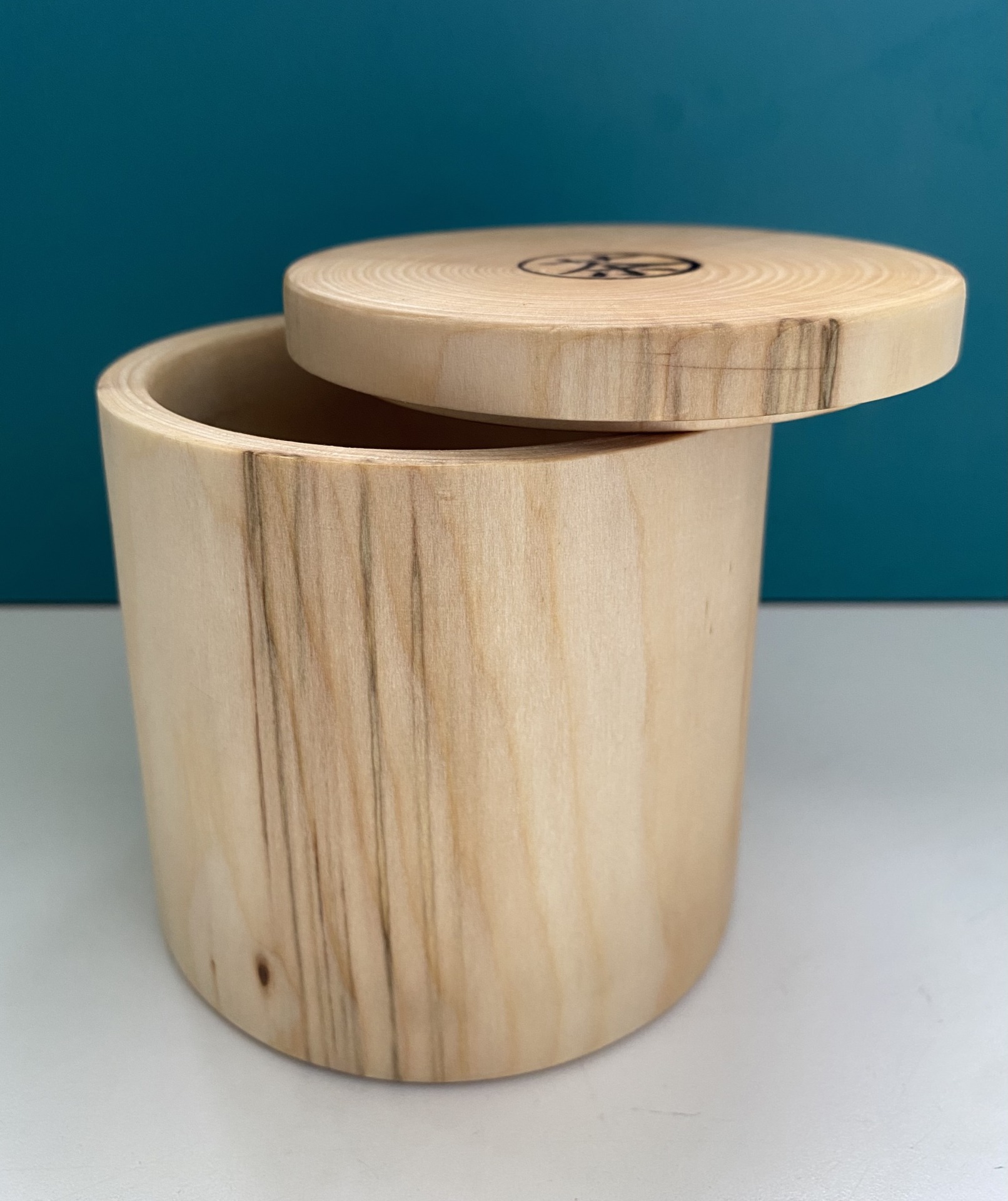 Цилиндрическую баночку из гладко отшлифованного, неокрашенного массива липы с плотно прилегающей крышкой.