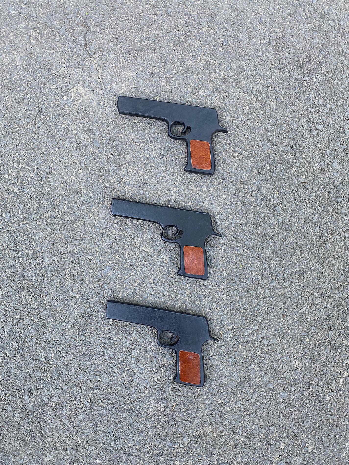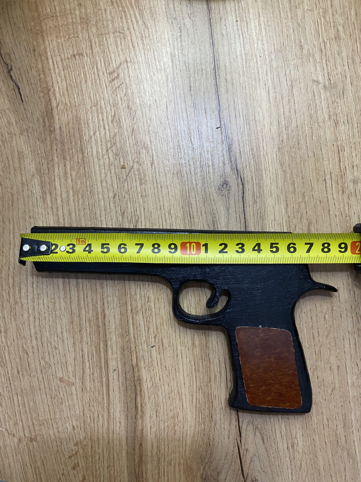 Пистолет изготовлен из фанеры толщиной 15мм.Покрыты чёрным акриловым лаком.