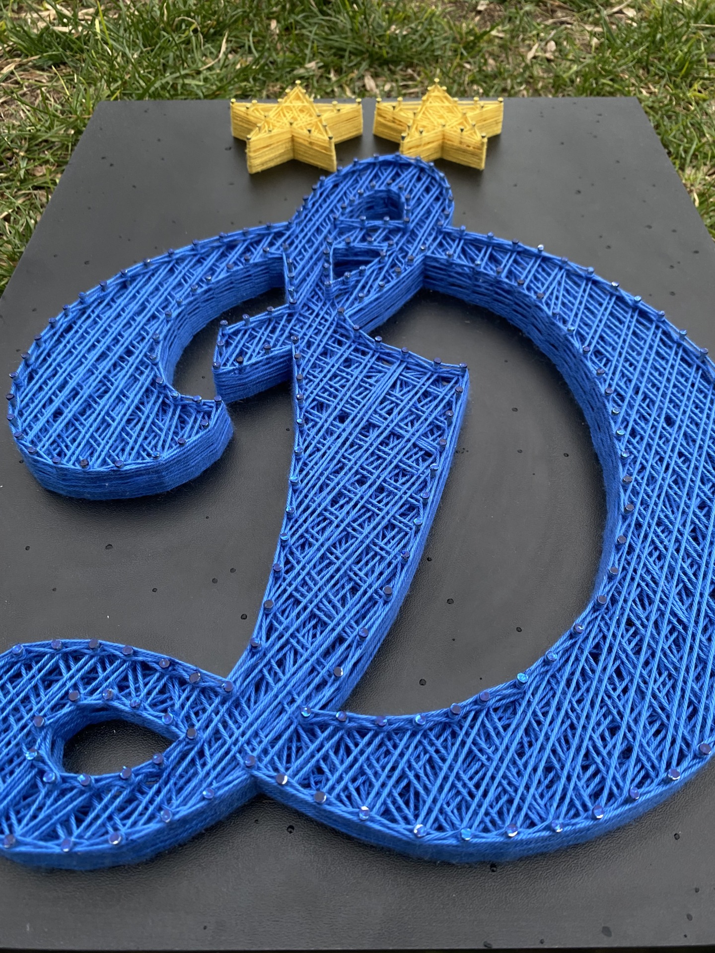 ЛОГОТИП ВЫПОЛНЕН ИЗ НИТОК И ГВОЗДЕЙ ,НА ЧЁРНОМ ЛДСП(16ММ).