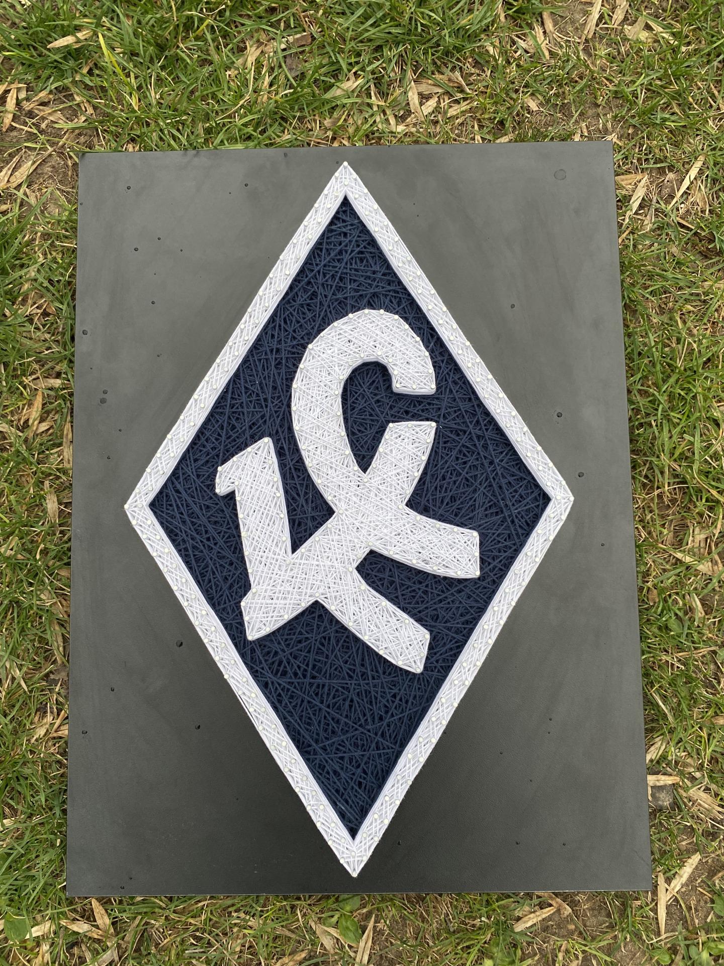 ЛОГОТИП ВЫПОЛНЕН ИЗ НИТОК И ГВОЗДЕЙ ,НА ЧЁРНОМ ЛДСП(16ММ).