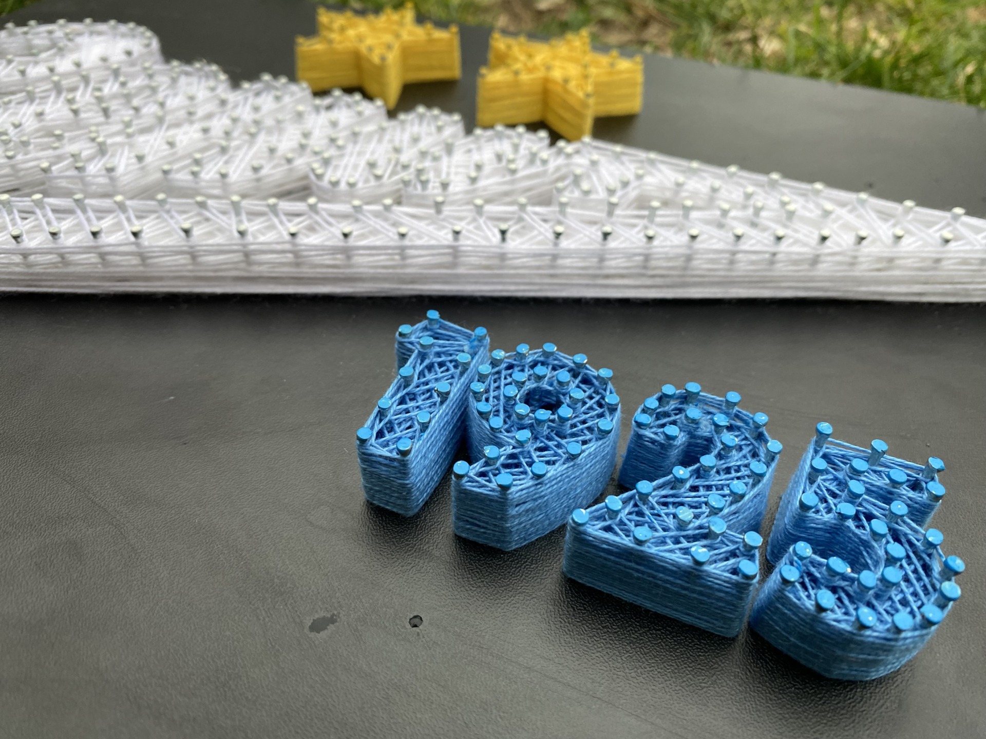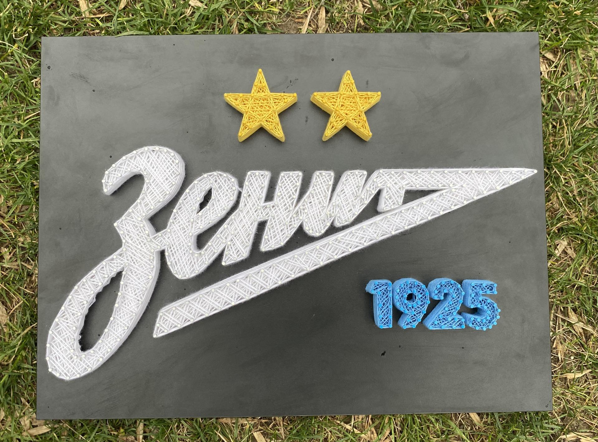 ЛОГОТИП ВЫПОЛНЕН ИЗ НИТОК И ГВОЗДЕЙ ,НА ЧЁРНОМ ЛДСП(16ММ).
