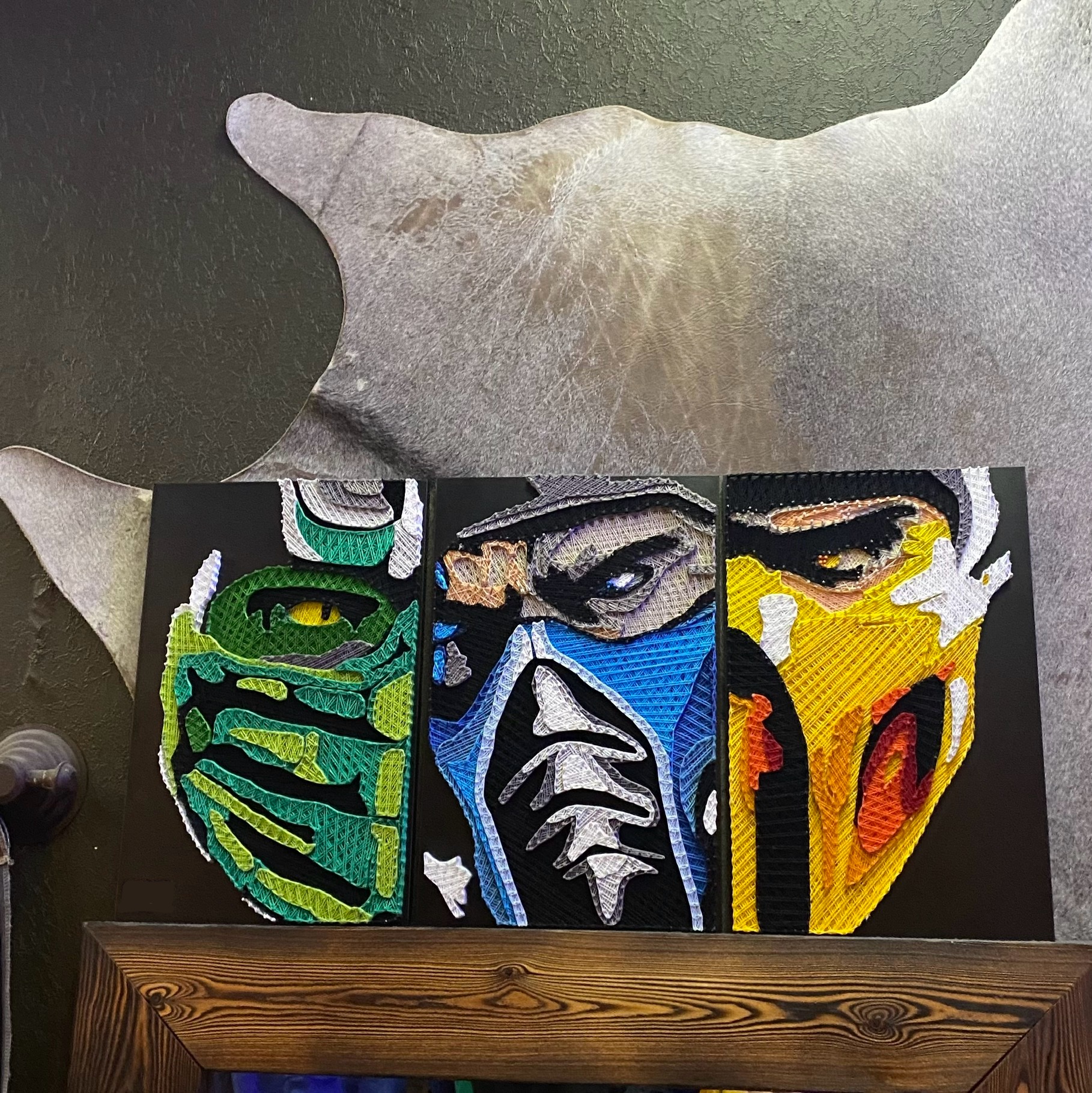 КАРТИНА ВЫПОЛНЕНА ИЗ НИТОК И ГВОЗДЕЙ ,НА ЧЁРНОМ ЛДСП(16ММ).