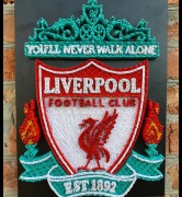 ЛОГОТИП ВЫПОЛНЕН ИЗ НИТОК И ГВОЗДЕЙ ,НА ЧЁРНОМ ЛДСП(16ММ).